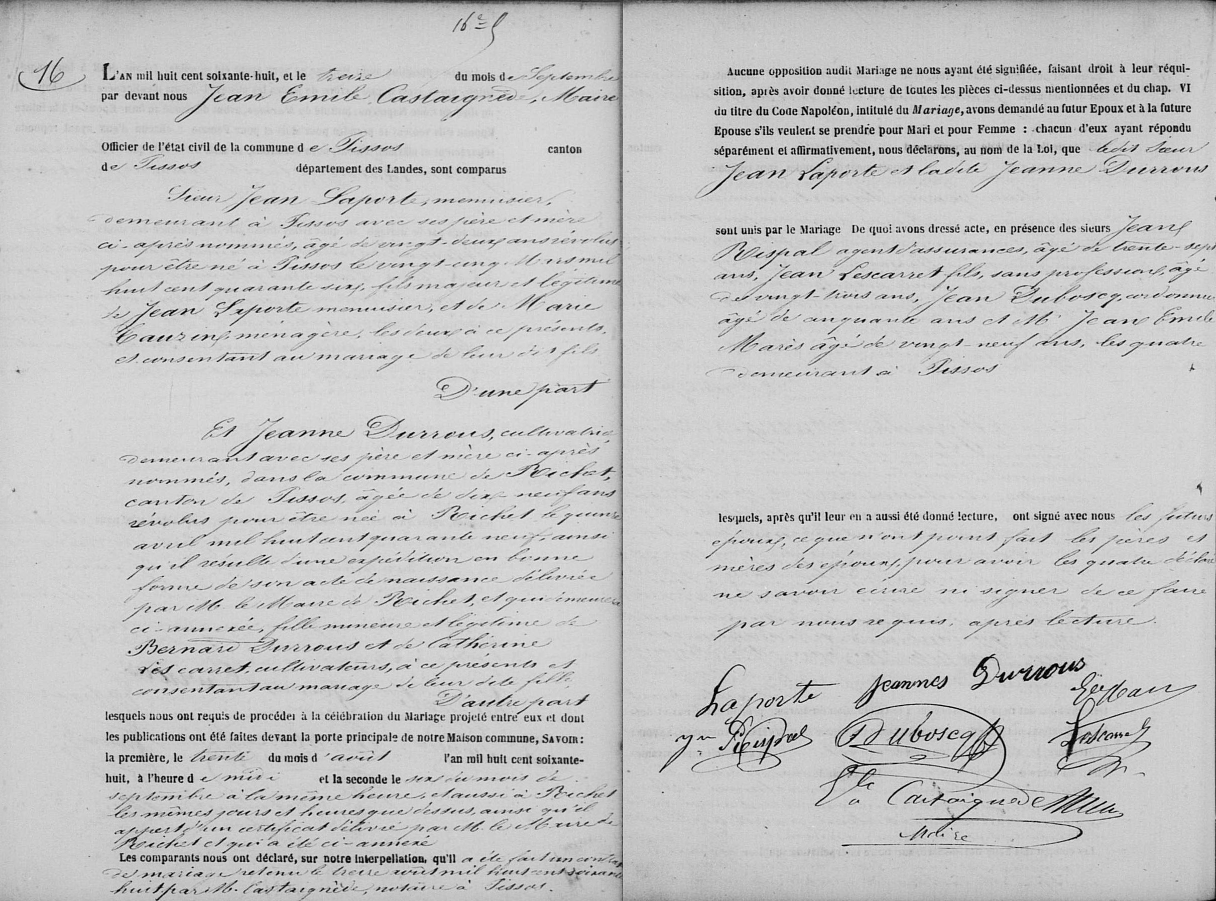 Jean LAPORTENaissance : 25 mars 1846 26 27 — Gentieu, Pissos 40227, Landes, Aquitaine, FRA |