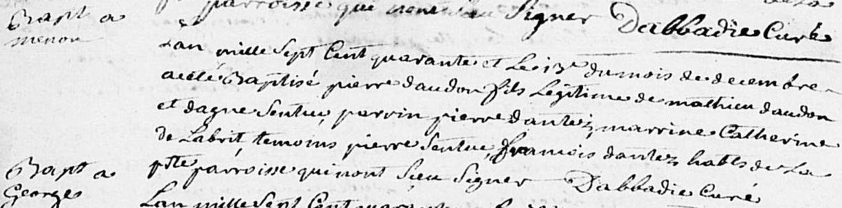 | Baptême d’un frère | Pierre DAUDON 13 décembre 1740 (Âge 8 ans) |