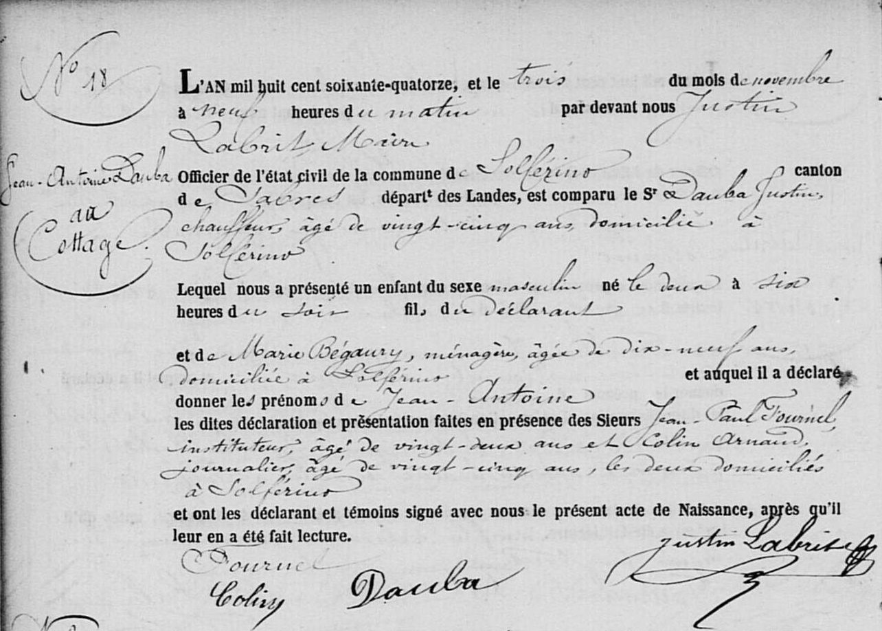 Jean DAUBA Naissance : 22 mai 1847 29 — Escource 40094, Landes, Aquitaine, FRA |