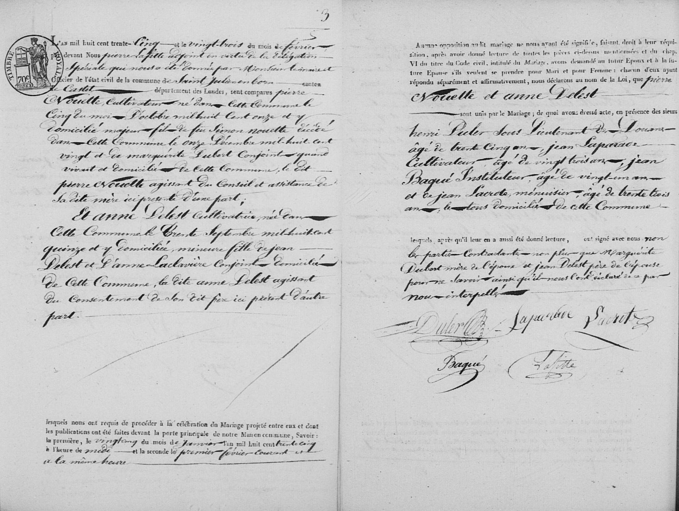 Mariage : 23 février 1835 — Saint-Julien-en-Born 40266, Landes, Aquitaine, FRA |