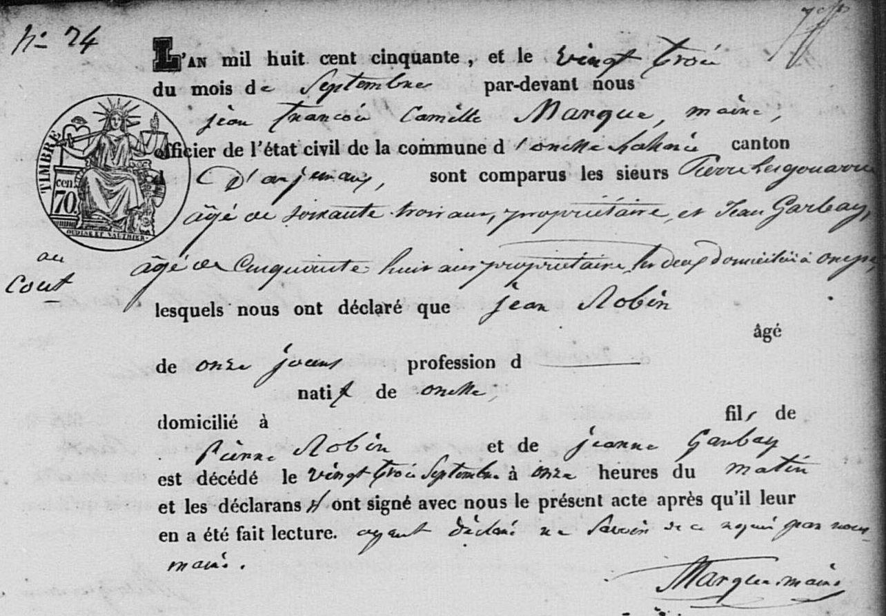 Jean ROBIN Naissance : 6 septembre 1850 32 26 — Cout, Onesse-et-Laharie 40210, Landes, Aquitaine, FRA Décès : 23 septembre 1850 — Cout, Onesse-et-Laharie 40210, Landes, Aquitaine, FRA |