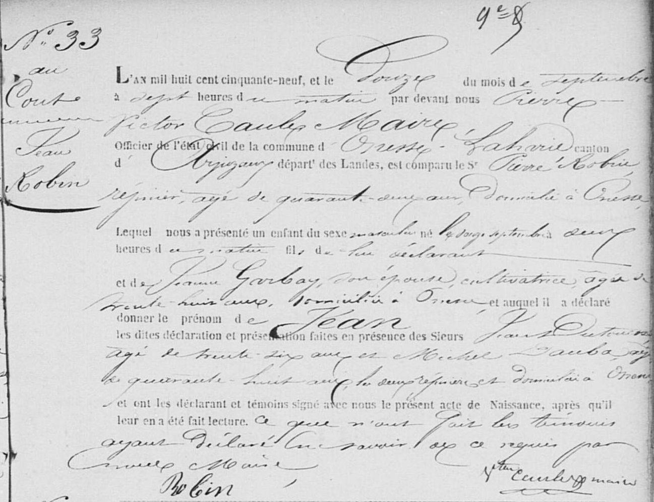 Jean ROBIN Naissance : 12 septembre 1859 41 35 — Cout, Onesse-et-Laharie 40210, Landes, Aquitaine, FRA |