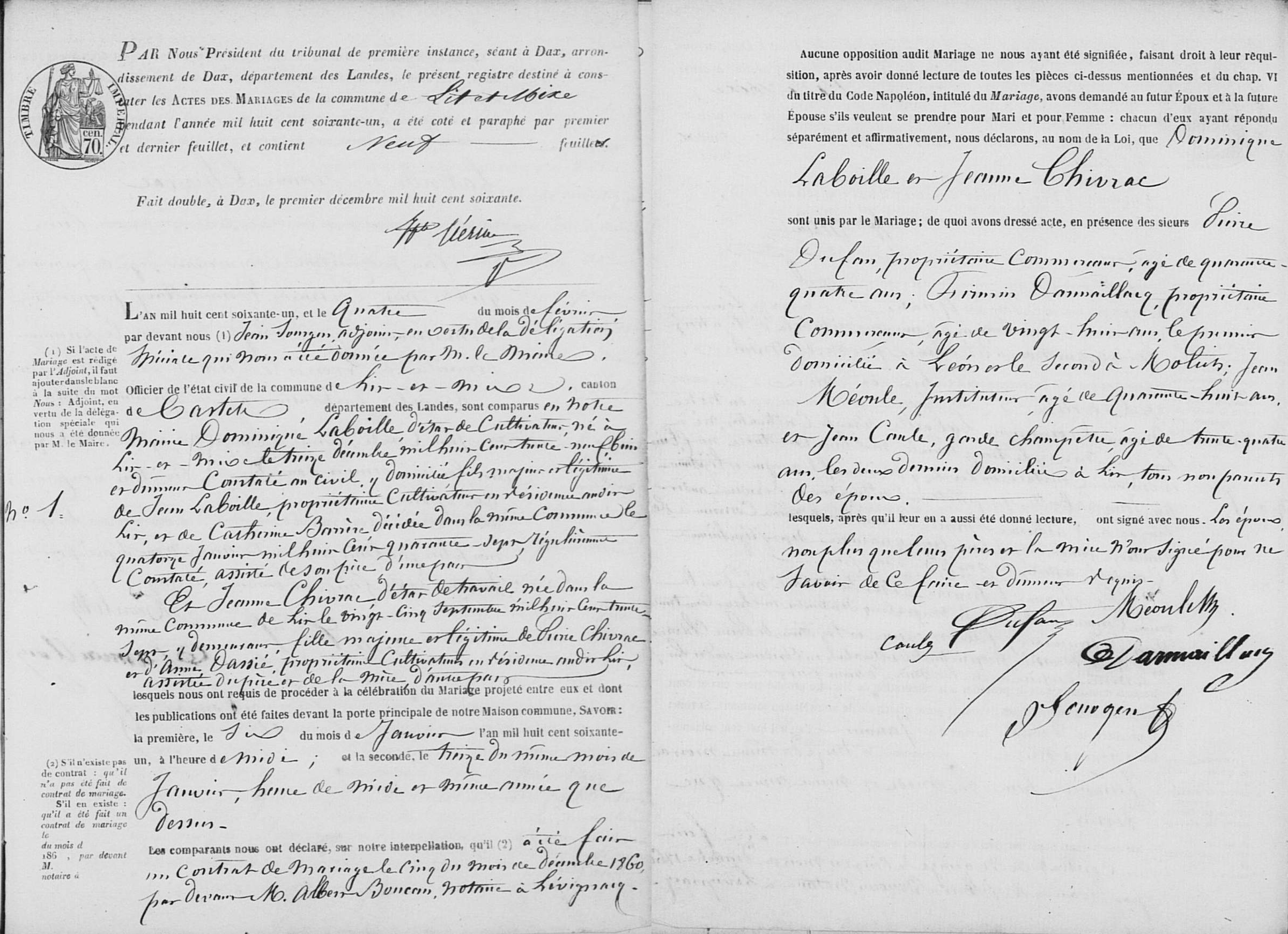 Mariage : 4 février 1861 — Lit-et-Mixe 40157, Landes, Aquitaine, FRA |