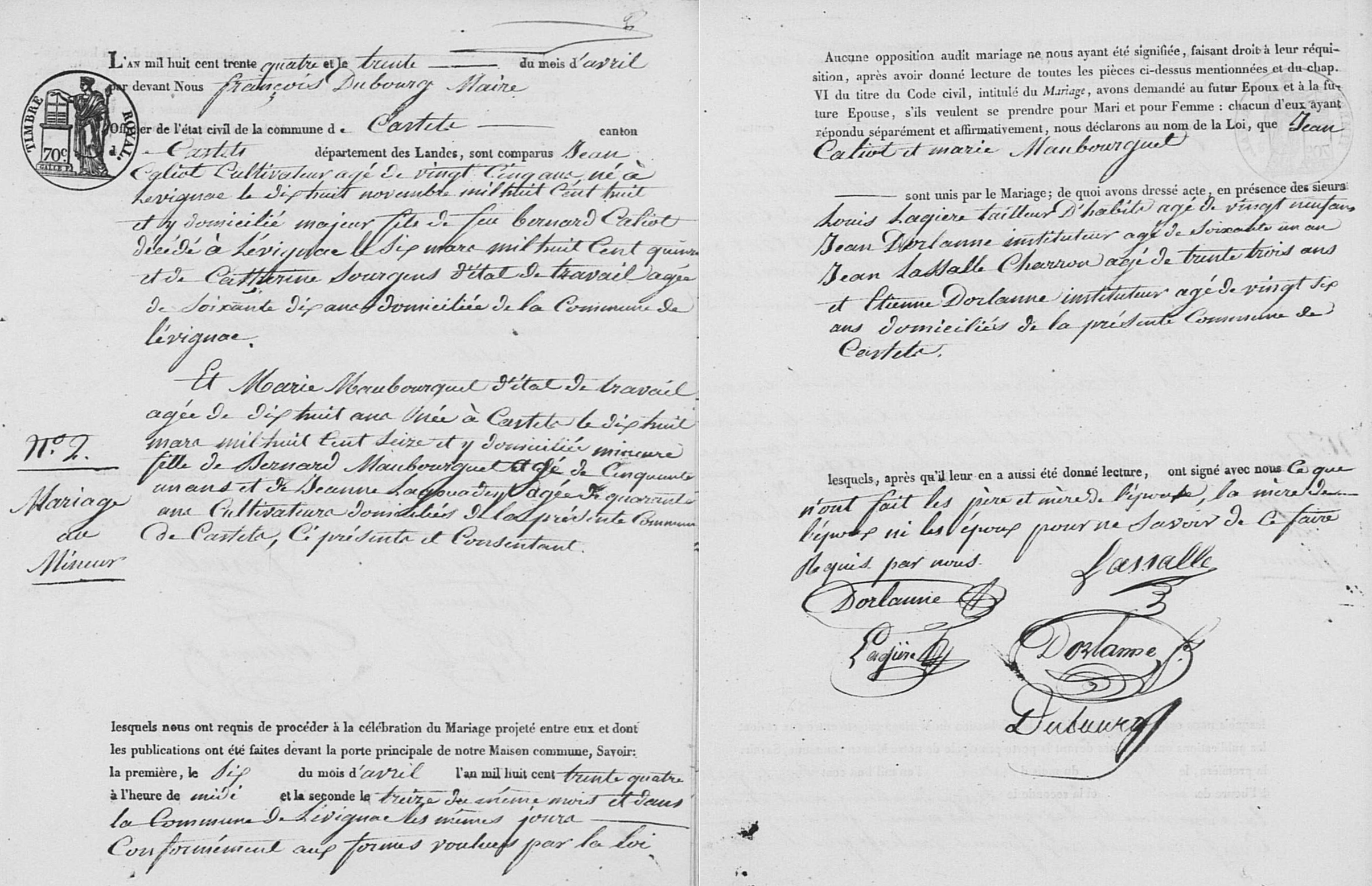 Mariage : 30 avril 1834 — Castets 40075, Landes, Aquitaine, FRA |