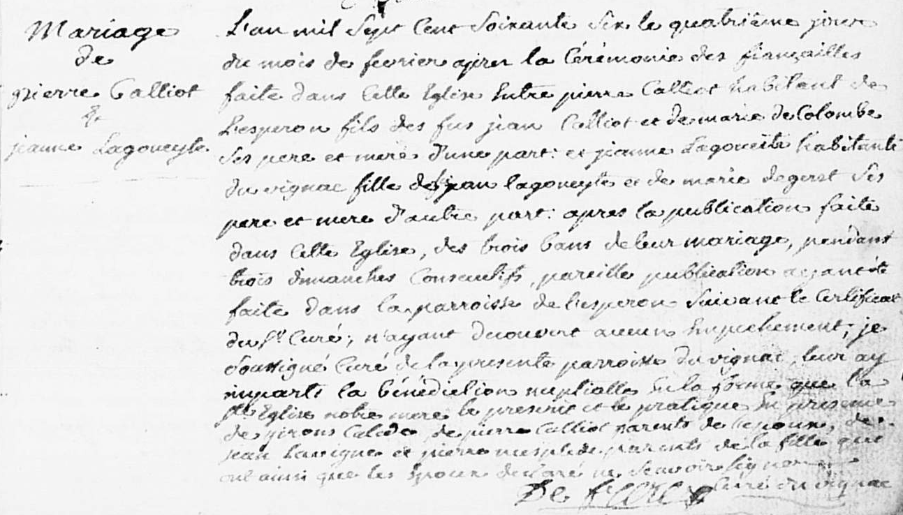 Pierre CALIOT Naissance : 28 juin 1742 35 43 — Lesperon 40152, Landes, Aquitaine, FRA |