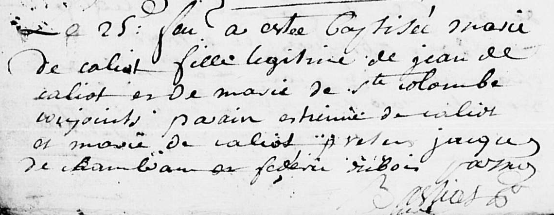 | Baptême d’une fille | Marie CALIOT 25 février 1729 (Âge 22 ans) |