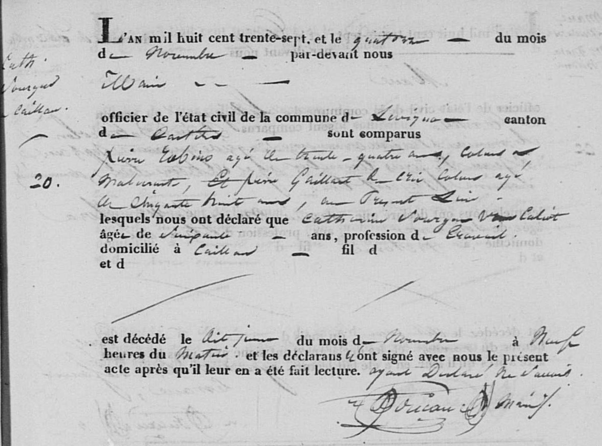 | Décès de la mère | Catherine SURGEN 14 novembre 1837 – 09:00 (Âge 33 ans) |