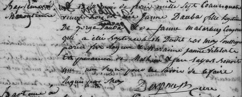 | Baptême d’un frère | Jacques DAUBA 26 octobre 1784 (Âge 3 ans) |