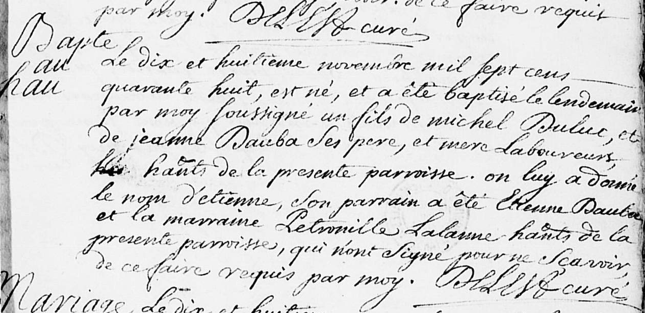 | Baptême d’un fils | Etienne DULUC 19 novembre 1748 (Âge 19 ans) |