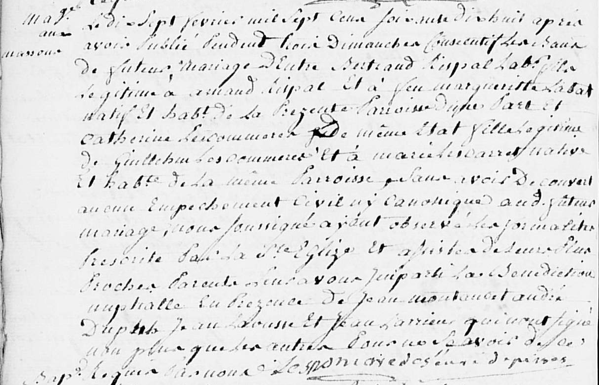 Mariage : 17 février 1778 — Massou, Pissos 40227, Landes, Aquitaine, FRA |