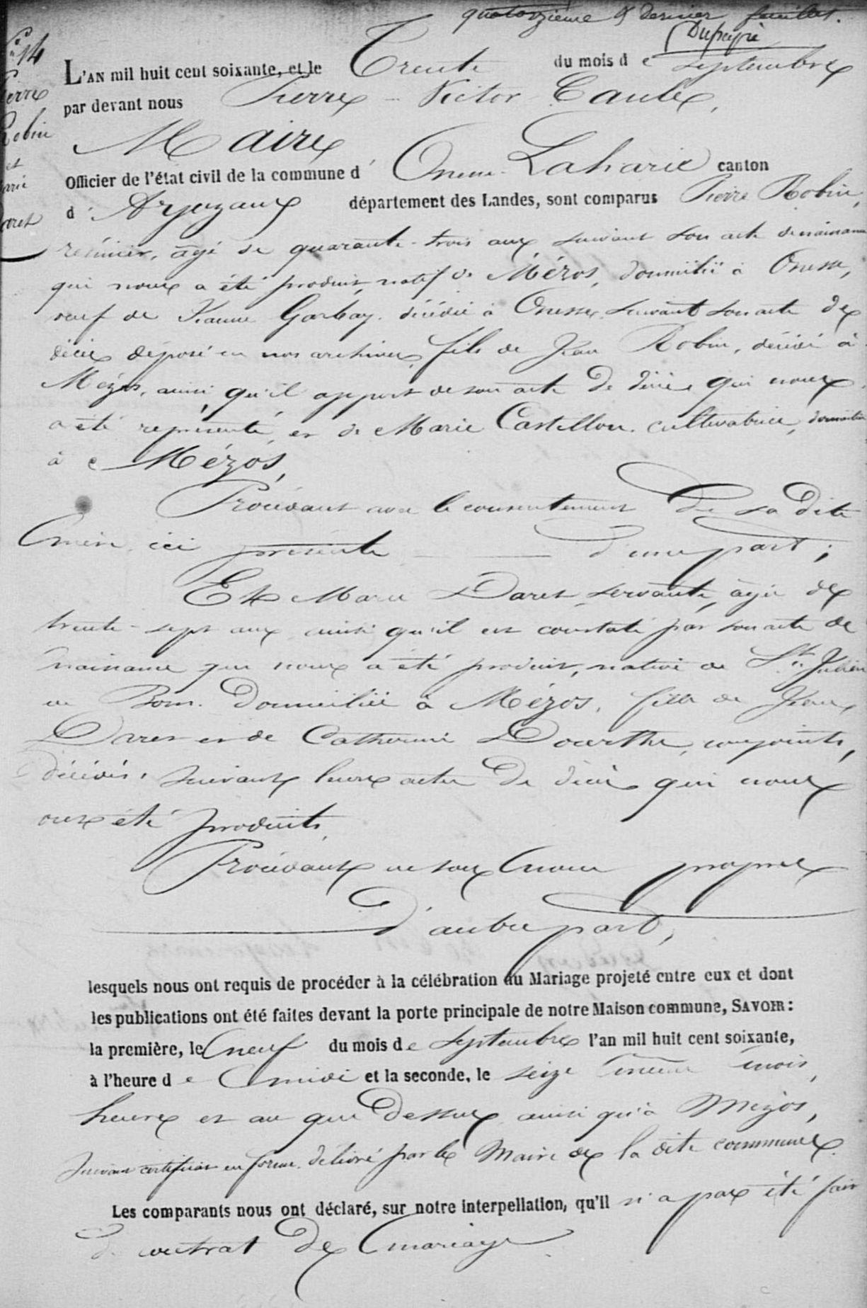 Mariage : 30 septembre 1860 — Onesse-et-Laharie 40210, Landes, Aquitaine, FRA |