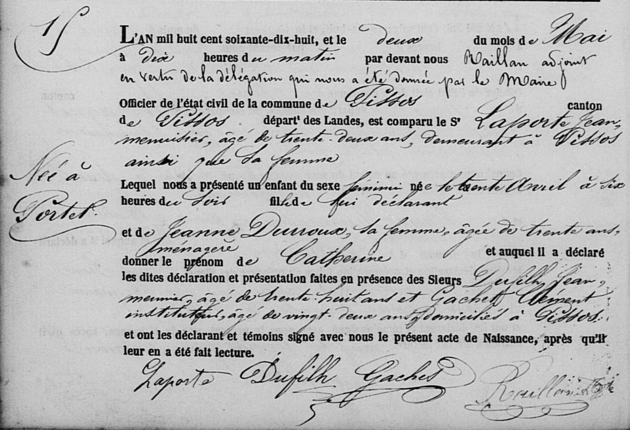 LAPORTE Catherine - 18780430 - Acte de naissance